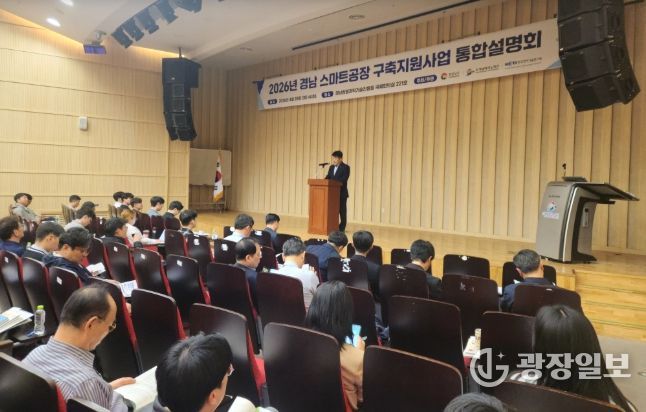 광장일보 주재영 기자 | 경상남도는 28일 경남테크노파크 경남창원과학기술진흥원에서 ‘2026년 경남 스마트공장 구축 지원사업 통합 설명회’를 개최하고, 제조 인공지능(AI) 기반 스마트공장 보급·확산에 속도를 낸다고 밝혔다.