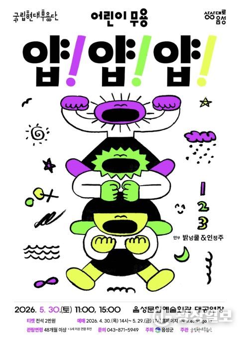 광장일보 이현나 기자 | 음성군은 어린이들을 춤의 세계로 초대하는 국립현대무용단의 어린이 무용 '얍! 얍! 얍!'을 오는 5월 30일 음성문화예술회관에서 개최한다고 밝혔다.