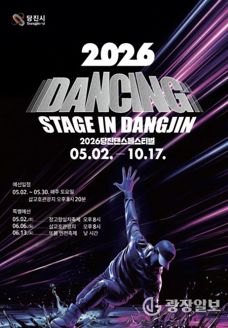 광장일보 나학천 기자 | 당진시는 시민과 관광객이 함께 즐기는 당진 댄스 페스티벌 ‘2026 댄싱 스테이지 in 당진’ 본선 진출팀 선발을 위한 예선을 오는 5월 2일부터 6월 13일까지 매주 토요일 개최한다고 29일 밝혔다.