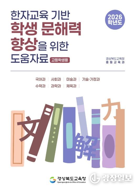 광장일보 주재영 기자 | 경북교육청은 학생들의 언어능력과 문해력 향상을 지원하기 위해 ‘한자교육 기반 학생 문해력 향상을 위한 도움 자료’를 개발해 도내 고등학교에 보급했다고 29일 밝혔다.