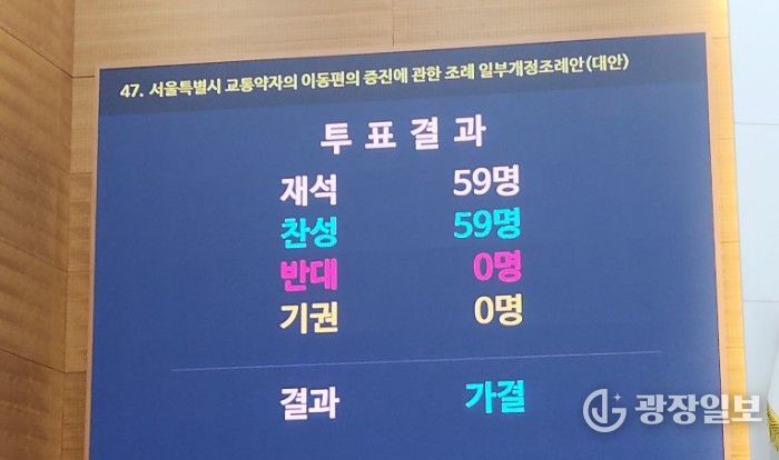 재석의원 59명의 만장일치로 가결된 이번 조례안은 향후 서울시의 공포 절차를 거쳐 본격적으로 시행될 예정이다.