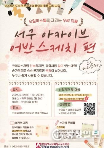 광장일보 주재영 기자 | 인천광역시교육청서구도서관은 29일부터 50세 이상 지역 주민을 대상으로 우리 마을의 풍경을 그림으로 기록하는 문화예술 프로그램 ‘서구 아카이브 어반스케치 편’ 참여자를 모집한다.