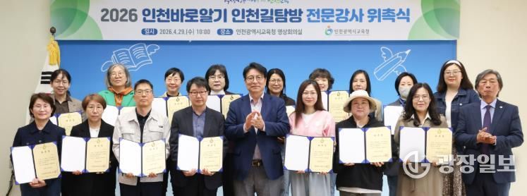 광장일보 주재영 기자 | 인천광역시교육청은 29일 인천바로알기 관계자 30여 명을 대상으로 ‘2026 인천바로알기 인천길탐방 전문강사 위촉식’을 개최했다.