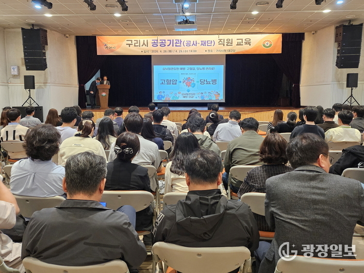 광장일보 =주재영 기자 | 구리시는 지난 4월 28일 구리시청 대강당에서 공공기관 직원들을 대상으로 자체 제작한 ‘심뇌혈관질환 이해’ 교육 영상을 상영하며 교육을 실시했다고 밝혔다.