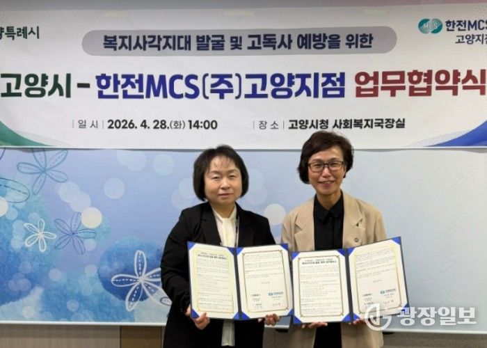 광장일보 주재영 기자 | 고양특례시는 지난 28일 시청 사회복지국장실에서 한전MCS(주) 고양지점과 위기가구 발굴 및 지원을 위한 ‘온(溫)마음 복지스위치 ON’ 업무협약을 체결했다.