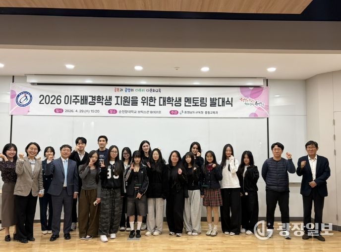 광장일보 주재영 기자 | 충남교육청은 29일, 순천향대학교(아산)에서 순천향대 지도자 학생 6명과 온양용화고·아산충무고 학생 20명, 담당 교사 등 30여 명이 참석한 가운데 ‘2026 이주배경학생 지원을 위한 대학생 지도 발대식’을 개최했다.