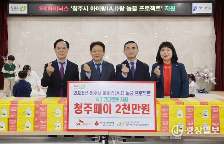 광장일보 이현나 기자 | 청주시는 29일 SK하이닉스㈜가 지역 영유아 대상 인공지능(AI) 코딩교육 지원을 위해 2천만원 상당의 청주페이를 청주시육아종합지원센터에 기탁했다고 밝혔다.
