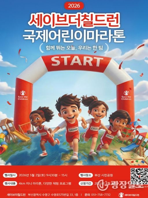 광장일보 주재영 기자 | 부산시는 오는 5월 2일 오전 9시 30분 부산시민공원에서 '2026 세이브더칠드런 국제어린이마라톤'을 개최한다고 밝혔다.