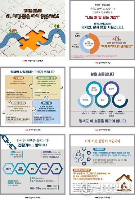 광장일보 주재영 기자 | 인천여성가족재단은 생애주기별 정책 사각지대 해소를 위해 2025년 수행한 연구보고서 '인천광역시 생애주기별 사각지대 지원 강화 방안 연구'를 바탕으로 카드뉴스를 제작·배포했다.