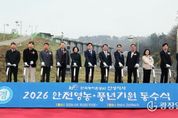광장일보 주재영 기자 | 안성시는 4월 10일 고삼면 봉산리 소재 고삼저수지에서 한국농어촌공사 주관으로 ‘2026년 안전영농 및 풍년기원 통수식’을 개최했다고 밝혔다. 통수식은 한 해 농사의 시작을 알리며, 저수지 수문을 열어 농경지에 용수를 공급하고 무사안녕과 풍년을 기원하는 전통 행사다. 퓨전국악 사물놀이 공연으로 막을 올린 이날 행사는 공식 행사로 내빈 소개, 유공자 감사패 수여, 기념사 및 축사, 격려사 순으로 진행됐다. 이어진 본 행사에서는 올 한 해 농사의 풍요를 비는 전통제례 의식과 풍년기원 떡 컷팅식이 진행됐으며, 행사의 하이라이트인 수문 개방 퍼포먼스가 펼쳐졌다. 비상수문이 열리며 폭죽과 함께 시원한 물줄기가 쏟아져 나와 참석자들의 환호와 기대를 모았다. 안성시 관계자는 “고삼저수지는 지역 농업을 뒷받침하는 핵심 기반시설로서 그 역할이 매우 크다”며, “최근 가뭄과 집중호우 등 기후 변동성이 커지는 상황에서 안정적인 용수 확보와 체계적인 수자원 관리가 어느 때보다 중요하다”고 강조했다. 한편, 1963년 준공된 고삼저수지는 총저수량 1,610만 5천 톤 규모의 대형 저수지로, 안성과