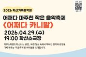광장일보 주재영 기자 | 인천 미추홀구 학산 생활 문화센터 학산소극장에서 오는 4월 29일 저녁 7시 ‘2026년 학산 가족 음악회’의 첫 번째 공연을 개최한다. ‘학산 가족 음악회’는 공모를 통해 선정된 다양한 공연을 선보이며, 시민들이 일상에서 부담 없이 공연 문화를 즐길 수 있도록 마련된 프로그램이다. 특히 가까운 공간에서 편안하게 관람할 수 있어 가족 단위 관객을 비롯해 누구나 함께할 수 있는 것이 특징이다. 올해 첫 무대는 어쿠스틱 밴드 ‘신나는 섬’의 공연 ‘어쩌다 마주친 작은 음악 축제 '어쩌다 카니발'’로 꾸며진다. ‘신나는 섬’은 바이올린, 아코디언, 집시 기타, 우쿨렐레, 하모니카, 더블베이스, 퍼커션 등 다양한 어쿠스틱 악기를 기반으로 활동하며, 경쾌하면서도 따뜻한 사운드로 관객과 호흡해 온 팀이다. 특히 ‘망원동 로마니’, ‘아침부터 카니발이야’ 등 밴드 고유의 색깔이 담긴 곡들과 함께 ‘리멤버 미’, ‘에델바이스’ 등 대중에게 친숙한 곡들을 연주해, 마치 유럽의 어느 골목에서 우연히 마주친 거리 축제와 같은 이국적이고 동화적인 감동을 선사할 계획이다.