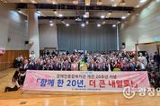 광장일보 주재영 기자 | (재)김해시복지재단 김해시장애인종합복지관은 지난 9일, 복지관 일원에서 개관 20주년을 맞아 『함께 한 20년, 더 큰 내일로』라는 슬로건으로 행사를 개최했다. 김해시장애인종합복지관은 2006년 개관 이후, 장애인 주간보호센터, 장애인 목욕탕을 신축·개관하고, 본관 증축공사 등을 통해 서비스 분야를 지속적으로 확대해 왔다. 2014년 4월에는 김해시복지재단 위·수탁 운영을 통해 공공성과 전문성을 강화했으며, 지역사회 장애인의 삶의 질 향상을 목표로 다양한 복지서비스를 제공해 오고 있다. 현재는 개인별 지원계획 수립을 포함한 10개 분야의 서비스를 운영하며, 장애 당사자의 기능 향상 및 취미·여가 생활 증진에 기여하고 있다. 개관 20주년을 기념하는 이번 행사는 그간의 경과를 지역사회와 공유함으로써 기관의 인지도와 신뢰도를 높이고, 소통과 참여를 통해 장애인 인식 개선과 통합적 복지 환경을 조성을 도모하고자 마련됐다. 행사는 ▲ 기념식(유공자 표창, 기념영상 상영 등) ▲ 부대행사 (체험 및 먹거리, 이동보장구 점검 및 홍보부스 운영, 역사 사진전, 미술전시회