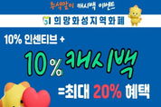 광장일보 나병석 기자 | 화성특례시가 추석 명절을 맞아 9월 22일부터 10월 4일까지 ‘희망화성지역화폐 특별 캐시백 이벤트’를 운영한다. 이번 이벤트는 행사 기간 중 희망화성지역화폐로 3만 원 이상 결제 시 결제금액의 10%를 캐시백으로 돌려주는 이벤트로, 1인당 최대 3만 원(결제금액 기준 30만 원)까지 캐시백을 받을 수 있다. 시는 ‘희망화성지역화폐’ 충전 시 충전 금액의 10%를 인센티브로 상시 제공하고 있으며, 지난 1일부터 10월 31일까지는 인센티브가 지급되는 한도금액을 월 100만 원으로 확대해 월 최대 10만 원까지 인센티브를 제공하고 있다. 여기에 캐시백 이벤트까지 더해지면 시민들은 지역화폐 결제금액 기준 3만 원부터 30만 원까지는 20% 할인 효과를 누릴 수 있게 된다. 캐시백은 지역화폐 충전 시 지급된 인센티브를 제외한 본인 충전금 사용분에 한해 적용되며, 예산이 소진될 경우 이벤트는 조기 종료될 수 있다. 지급된 캐시백은 연 매출 12억 원 이하 가맹점에서만 사용할 수 있으며, 사용기한은 2025년 12월 31일까지다. 시는 코로나19 이후 장기간