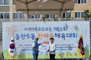 광장일보 나병석 기자 | 지난 21일 ‘제3회 동탄5동 한마음 체육대회’가 동탄5동 체육진흥회 주관으로 다원이음터 축구장에서 성황리에 개최됐다. 이번 대회는 주민들의 화합과 소통을 통해 건강을 증진하고 공동체 의식을 다지기 위해 마련됐으며, 400여 명의 주민과 내빈들이 함께해 활기찬 분위기를 더했다. 행사는 풍물 공연과 색소폰 연주로 흥겨운 막을 올렸고, 개회식에서는 모범시민 표창 수여와 내빈들의 축사가 이어졌다. 또한, 동탄5동 체육진흥회와 감탄정형외과가 의료 지원·후원 협약을 체결해 향후 체육대회를 비롯한 다양한 동 행사에서 의료 지원과 후원을 지속하기로 약속하며 지역사회 상생의 의미를 더했다. 본 경기는 볼풀공 서바이벌, 큰 공 배구, 줄다리기 등 남녀노소가 모두 참여할 수 있는 명랑운동회 종목으로 진행돼 웃음과 열기가 가득했다. 이어진 태권도 축하공연은 참가자들에게 힘찬 에너지를 전하며 분위기를 한층 끌어올렸다. 또한 체험부스 운영과 경품 추첨 이벤트도 마련돼 가족 단위 참가자들에게 다채로운 즐길 거리를 제공했다. 풍성한 상품과 이벤트는 주민들의 큰 호응을 얻으며 축제의 열기를