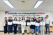 광장일보 나병석 기자 | 오산문화재단은 9일 오산시지역아동센터연합회와 오산 청소년들이 건강한 사회 구성원으로 성장할 수 있도록 상호협력을 하기 위한 업무협약을 체결했다고 밝혔다. 협약식은 오산문화재단에서 열렸으며, 최상열 오산문화재단 사무국장과 이광훈 오산시지역아동센터연합회장 및 관계자들이 참석한 가운데 진행됐다. 오산시지역아동센터연합회는 '아동복지법' 및 '사회복지사업법'에 근거해 방과 후 돌봄이 필요한 지역 아동의 건전한 성장을 지원하고 종합적인 복지서비스를 제공하는 단체로, 2025년 9월 현재 9개 센터에서 총 272명의 아동을 돌보고 있다. 이번 협약은 청소년들의 열정, 성장, 행복, 창의의 가치를 위해 문화예술교육 및 문화향유를 위한 협력의 중요성을 인식하고 양 기관 간 신뢰감 형성과 필요한 지역 자원 연계 등 상호 협력함을 목적으로 추진됐다. 이광훈 오산시지역아동센터연합회장은 “그동안 ‘꿈을 향해 날개짓하다’ 행사 때마다 적극적으로 도움을 주셔서 감사한 마음을 가지고 있었다”며 “이제는 상호협력으로 센터에서도 청소년들을 위한 문화재단의 문화예술교육 및 다양한 사업에 대해 적극적으로 연계