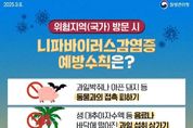 광장일보 나병석 기자 | 오산시는 질병관리청이 지난 9월 8일 니파바이러스감염증을 제1급감염병으로 신규 지정함에 따라 시민들에게 감염예방수칙 준수와 개인위생 관리에 철저를 기해줄 것을 당부했다. 니파바이러스감염증은 현재 국내 유입 가능성은 낮지만, 인체 감염 시 치명률이 40~75%에 달하는 것으로 알려져 있어 철저한 관리가 필요한 신종감염병이다. 니파바이러스는 사람과 동물 모두에 감염될 수 있으며, 감염된 동물(과일박쥐, 돼지 등)과의 접촉이나 오염된 식품(대추야자수액 등) 섭취를 통해 전파될 수 있다. 또한 환자의 체액과 밀접 접촉 시 사람 간 전파도 가능하다. 특히 최근 환자 발생이 지속되고 있는 검역관리지역인 인도와 방글라데시를 방문한 여행객은 귀국 후 14일 이내에 발열, 두통, 인후통 등 의심 증상이 나타날 경우 질병관리청 콜센터 또는 관할 보건소로 즉시 신고해야 한다. 예방을 위해서는 ▲야생동물과의 접촉 피하기 ▲오염된 음료·식품 섭취 금지 ▲환자와 직접 접촉 피하기 ▲손 씻기 등 개인위생 관리 철저가 필요하다. 김태숙 오산시보건소장은 “코로나19 경험을 통해 신종감염병에
