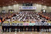 광장일보 나학천 기자 | 태안군이 지난 27일 ‘2026 태안국제원예치유박람회’ 개최까지 29일을 남겨놓고 군청 대강당에서 개인 및 단체 봉사자 350여 명이 참석해 군민자원봉사단 발대식을 개최하고 박람회의 성공적인 개최를 위한 조직 결속 강화에 나섰다. 이번 발대식은 박람회 현장에서 활동할 자원봉사자들의 역량을 높이고 참여 의지를 다지기 위해 마련됐으며, 읍·면 자원봉사단과 박람회 참여 봉사자 등이 한자리에 모여 성공 개최를 위한 결의를 다지는 시간으로 꾸며졌다. 태안군자원봉사센터가 주관한 이날 행사는 1부 자원봉사자 소양교육으로 진행됐으며, 강정원 고양시자원봉사센터 사무국장이 강사로 나서 봉사자의 자세와 현장 대응 역량 제고를 위한 특강을 진행했다. 2부 발대식에서는 고봉화, 김분식 씨가 봉사단 대표로 결의문을 선서하며 성실한 활동을 다짐했고, 박람회의 상징성을 담은 ‘수국 퍼포먼스’를 선보여 참석자들의 관심을 모았다. 이번 행사에는 관내 24개 단체협의회와 8개 읍면 자원봉사단이 참여해 군민과 함께하는 국제행사 분위기를 조성했으며, 군은 이번 발대식을 계기로 자원봉사 참여 확대와 사기 진작,