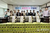 광장일보 나학천 기자 | 지난 26일 지동행정복지센터에서는 추석 명절을 앞두고 관내 어려운 이웃을 위한 추석 맞이 이웃사랑 나눔 전달식을 가졌다. 이날 행사는 지동 단체장협의회 주관으로 진행됐으며 지역 내 20개 단체 및기관(주민자치회, 주민자치회장 최홍석, 통장협의회, 지역사회보장협의체, 새마을부녀회, 바르게살기운동위원회, 방위협의회, 자율방범대, 지동 115-10구역 주택재개발정비사업조합, 팔달새마을금고 본점, 수원제일·영락·동문교회, 지동시장·못골종합시장·미나리광시장 등 시장상인회, 수병원, 백리향, 지구시민연합, 대일실업)의 참여로 진행됐다. 이번 추석 명절 이웃사랑 나눔에는 현금(440만원), 온누리상품권(일만원권 210매), 라면(400상자), 백미(415포), 즉석국 및 김 50세트 등 총 17,936,000원 상당이 후원 됐으며, 전달식 후에 지동 행정복지센터 직원들이 거동이 불편한 홀몸 어르신들 가구에 직접 방문하여 후원 물품을 전달하고 어르신들과 추석 명절 안부 인사를 나누었다. 정순화 지동장은 “많은 분들의 정성과 따뜻한 손길 덕분에 이번 추석에도 어려운 이웃들에게 희망과 위로를 전할 수 있