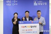 광장일보 나학천 기자 | 수원시 팔달구는 지난 26일, 경기교총웨딩하우스에서 기부하는 성금 200만원 전달식을 가졌다. 팔달구 팔달산로 89-13에 위치한 경기교총웨딩하우스는 결혼식과 각종 연회를 진행할 수 있는 예식 전문 시설로, 품격 있는 서비스와 지역 밀착형 운영으로 알려져 있다. 이번 성금은 팔달구의 저소득층을 위한 특화사업과 생필품 구매 등에 사용될 예정이다. 장금식 대표는 “작은 정성이지만 도움이 필요한 이웃들에게 보탬이 되기를 바란다”며, “앞으로도 지역사회와 함께 나눔을 실천할 수 있도록 지속적으로 관심을 기울이겠다”고 전했다. 이상균 팔달구청장은 “지역사회의 어려운 이웃을 위해 귀한 성금을 전달해주신 경기교총웨딩하우스에 깊이 감사드린다”며, “소중한 마음이 저소득 주민들에게 잘 전달될 수 있도록 최선을 다하겠다”고 밝혔다.