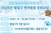 광장일보 나학천 기자 | 수원시 팔달구는 10월 18일 오후 12시부터 17시 30분까지 팔달구청 정문 앞마당에서 ‘2025년 팔달구 반려동물 문화교실’을 개최한다고 밝혔다. 반려동물 문화교실은 성숙한 반려문화 확산과 올바른 반려동물 관리, 양육 방법을 알리기 위해 마련됐으며 반려동물 등록자 및 팔달구민 120명을 대상으로 추진한다. 교육 프로그램은 △인식표 만들기 △산책 그룹 훈련 △반려견 셀프 미용으로 총 3개 프로그램을 추진한다. 12시부터 진행하는 ‘인식표 만들기’는 반려견 유실 방지를 위해 동물등록번호와 견주 연락처를 새긴 맞춤형 인식표를 직접 제작할 수 있고, 14시부터는 ‘산책 그룹 훈련’에서는 산책줄 핸들링과 돌발 상황 시 대처법 등 및 올바른 산책 방법에 대해 배워볼 수 있다. 15시 30분에는 초보자도 쉽게 실천할 수 있는 ‘반려견 셀프 미용 수업’이 준비되어 있다. 팔달구 관계자는 “2025년 반려동물 문화교실 개최를 통해 구민들이 반려동물을 책임감 있게 관리하고, 올바른 반려 문화가 조성되길 바란다“라고 말했다. 한편, 팔달구는 구 홈페이지, 안내문자 및 QR코드를