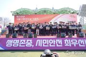 광장일보 나학천 기자 | 세종특별자치시가 20일 조치원체육공원에서 ‘제5주년 의용소방대의 날’ 기념식을 개최했다. 이번 행사는 지역 안전을 위해 헌신해 온 의용소방대의 노고를 격려하기 위한 자리로, 최민호 시장과 임채성 시의회 의장, 유관기관 단체장, 의용소방대원 등 700여 명이 참석했다. 기념식은 허왕 의용소방대연합회장의 환영사와 유공자 포상, 주제 영상 시청, 기념사, 축사 순으로 진행됐다. 유공자 포상은 대통령 표창을 받은 이순구 장군면 여성의용소방대원과 행정안전부장관 표창을 받은 이병진 전의면 남성의용소방대원, 이채원 어진동 여성의용소방대원 등 총 70명에게 수여됐다. 이날 행사에서는 의용소방대의 소방기술경연대회도 함께 열렸다. 대원들은 4인 조법, 소방호스 전개 및 회수, 심폐소생술 등 3개 종목에서 그동안 갈고닦은 기량을 마음껏 뽐냈다. 각 종목에서 1위를 차지한 팀은 오는 5월 전국 의용소방대 소방기술경연대회에 세종시 대표로 출전하게 된다. 최민호 시장은 “의용소방대가 시민의 안전과 생명을 보호하는 일에 힘써주신 덕분에 세종시가 더욱 안전한 도시