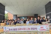 광장일보 나학천 기자 | 수원시 장안구 조원1동은 지난 24일, 추석 명절을 앞두고 관내 어려운 이웃을 위한 '추석맞이 이웃사랑 나눔 행사'를 개최했다고 밝혔다. 이날 행사는 주민자치회를 비롯하여 조원1동의 10개 단체와 북수원 신협, 한국건강관리협회 경기지부, 조원시장 상인회 등 다양한 곳에서 참여해 더욱 의미를 더했다. 목명균 조원1동 주민자치회장은 "우리 주변의 이웃들이 풍요로운 한가위를 보내는 데 보탬이 되고자 여러 단체 회원들이 한마음으로 뜻을 모았다"며, "앞으로도 나눔의 손길이 계속 이어질 수 있도록 노력하겠다"고 말했다. 김옥영 조원1동장은 "어려운 이웃을 위해 따뜻한 나눔을 실천해 주신 모든 후원자분들께 진심으로 감사드린다"며, "전달해주신 소중한 물품들은 필요한 이웃들에게 잘 전달될 수 있도록 하겠다"고 전했다. 조원1동은 전달받은 후원 물품들을 관내 저소득 가구와 복지 사각지대에 놓인 이웃들에게 전달할 예정이다.