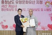 광장일보 나학천 기자 | 충남 서산시는 7일 시청 시장실에서 충청남도 유형문화유산 지정서 전달식을 개최했다고 밝혔다. 전달식에는 이완섭 서산시장, 개심사 혜산스님, 부석사 원우스님 등 10여 명이 참석했다. 새롭게 충청남도 유형문화유산으로 지정된 유산은 ▲서산 개심사 영산회상도 및 팔상도 ▲서산 개심사 지장보살도 및 시왕도 ▲서산 부석사 목조여래좌상 등 3건이다. 서산 개심사 영산회상도 및 팔상도, 서산 개심사 지장보살도 및 시왕도는 2025년 10월 30일에, 서산 부석사 목조여래좌상은 2026년 3월 10일 충청남도 유형문화유산으로 지정 고시됐다. 이 시장은 혜산스님과 원우스님에게 지정서와 함께 문화유산 보존을 위한 노고에 대한 감사의 뜻을 전달했다. 서산 개심사 영산회상도 및 팔상도는 1772년 제작된 것으로, 석가모니 부처님의 설법 장면과 생애를 그린 불화다. 경상도 활동 화승 ‘유성’ 등 다른 지역 화승들이 활동한 양상을 보여주는 사례로 평가되고 있다. 서산 개심사 지장보살도 및 시왕도는 1764년 제작된 것으로, 1758년 함께 세상을 떠난 김한신과