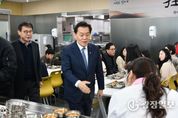 광장일보 나학천 기자 | 수원특례시 영통구는 지난 5일, 이재준 시장이 영통구청을 방문해 직원들과 함께하는 격려 오찬 자리를 가졌다고 밝혔다. 이번 행사는 구내식당‘영통정담’에서 직원 110여 명과 오찬을 함께한 뒤, 차담을 나누는 일정으로 진행됐다. 직원들의 일상적인 식사 공간에서 마련된 자리인 만큼, 형식에 얽매이지 않은 편안한 분위기 속에서 자연스러운 소통이 이어졌다. 이날 오찬은 혼합잡곡밥과 쇠고기국, 청양풍 찜닭, 비엔나만두강정, 물미역 등으로 차려져, 소박하지만 정성이 담긴 식사를 통해 직원 간 화합과 공감의 시간이 이어졌다. 이재준 시장은 “그간 각자의 자리에서 묵묵히 시정을 뒷받침해 온 영통구 직원 여러분의 노고에 감사드린다”며, “현장에서 시민과 가장 가까이에서 일하는 공무원들의 역할이 곧 수원의 경쟁력”이라고 격려했다. 장수석 영통구청장은 “이번 자리는 직원들과 함께하는 일상의 시간을 통해 소통의 의미를 다시 한번 되새길 수 있었던 자리였다”며, “직원들에게 작은 쉼과 격려가 되는 시간이 되길 바란다”고 전했다. 한편, 영통구는 앞으로도 다양한 소통의 자리를 통해 이어