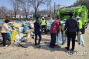 광장일보 박균현 기자 | 수원시 장안구 연무동은 본격적인 영농철을 앞두고 지난 1~2일 양일간 상·하광교동 일원에서 영농폐기물 집중 수거 작업을 실시했다. 이번 합동작업은 지역주민, 공무원 및 환경관리원 등 30여 명이 참여했으며, 새봄을 맞아 농촌 경작지 등에 방치된 폐비닐과 혼합 쓰레기를 일제히 정비해 깨끗한 농촌 환경을 조성하기 위한 취지로 마련됐다. 작업 첫날인 4월 1일에는 상·하광교동 주민을 비롯해 환경관리원 등 20여 명이 자발적으로 참여한 가운데 영농 폐비닐과 재활용품, 일반 쓰레기 등을 꼼꼼하게 분리했다. 이어 2일에는 전날 분리해 둔 폐기물을 수거 차량이 싣고 주변 잔여 쓰레기를 정돈하는 것으로 이틀간의 환경 정비 일정을 마무리했다. 연무동은 앞으로도 올바른 영농폐기물 배출방법을 홍보하는 한편, 불법소각 등 위반행위 단속을 강화해 산불 발생 요인을 원천 차단하고, 농촌 지역의 환경오염을 최소화하겠다는 방침이다. 공순정 연무동장은 “양일간 영농폐기물 작업에 동참해주신 분들의 노고에 감사드린다”며 “앞으로도 환경 정비 활동을 지속적으로 전개하여 주민분들게 더 깨끗한 생활환경을 제공하도