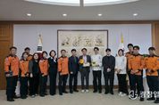 광장일보 이현나 기자 | 강원특별자치도 춘천소방서는 지역 제과업체 ‘자유빵집’(대표 이춘호)과 협업해 추진 중인 사회공헌 프로젝트 ‘빵 굽는 소방관, 안전을 전하는 제빵사’가 시민들의 큰 호응을 얻고 있다고 밝혔다. 이번 사업은 ‘소방관 빵’을 제작·판매하고, 수익 전액을 화재 취약계층 주거시설의 안전 기반 조성에 활용하는 지역 상생형 안전복지 모델로 기획됐다. 당초‘소방관 빵’은 500개 한정 판매, 11월 19일까지 운영할 예정이었으나, 판매 기간을 11월 30일까지 연장하고 수량 제한 없이 판매를 이어가기로 했다. 김진태 강원특별자치도지사는 11월 21일 ‘소방관 빵’ 프로젝트에 참여한 춘천소방서 실무자들을 도청으로 초청해 격려했다. 김 지사는 “소방관 빵은 도민과 상인, 소방이 함께 만드는 따뜻한 안전 공동체의 상징”이라며, “도 전역으로 확산 가능한 지역 안전문화 모델로 발전하기를 기대한다”고 말했다. 이춘호 자유빵집 대표와 춘천소방서는 “직원들과 정성을 다해 만든 제품인 만큼 시민들의 응원에 보답할 수 있도록 더욱 노력하겠다”고 입을 모으고, “앞으로도 시민과 함께하는 따뜻한 소방 행정