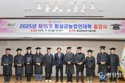 광장일보 이현나 기자 | 횡성군농업인대학은 21일 횡성군농업기술센터에서 ‘2025년 제15기 횡성군농업인대학 졸업식’을 진행했다. 제15기 농업인대학은 지난 2월부터 11월까지 횡성사과, 횡성한우, 미래농업인, 농업경영최고사관CEO 등 4개의 과정을 운영했으며, 총 93회 425시간의 교육을 자체강사와 각 분야의 전문가 등을 초빙해 실습 위주의 현장 중심 교육으로 추진했다. 횡성군농업인대학은 횡성농업의 특화 발전을 위한 품목별 장기 기술교육 기관으로 자리잡고 있으며, 올해는 총 90명의 수료생을 배출했다. 졸업식에는 김명기 군수와 횡성군의회 의장을 비롯해 내빈 및 90여 명의 수료생이 참석했으며, 농촌자원과장의 학사보고를 시작으로 공로상 및 개근상, 성적우수상, 졸업장 수여, 축사, 답사, 기념촬영 순으로 진행됐다. 김명기 횡성군수는 “졸업생들이 오늘의 성취를 바탕으로 더 큰 도전과 성장을 이어가길 바라며, 앞으로도 농업·농촌이 미래 경제성장 동력으로서 지속적으로 발전할 수 있도록 다양한 농업인교육을 추진하겠다”고 말했다.