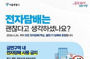 광장일보 주리아 기자 | 4월 24일부터는 담배사업법 개정·시행에 따라 액상형 전자담배 포함 모든 종류의 담배를 금연구역에서 흡연할 경우, 과태료가 부과된다. 이에 서울시는 개정 사항을 시민에게 적극적으로 안내하는 한편, 현장 점검을 본격 추진한다고 밝혔다. 그동안 합성니코틴을 원료로 한 액상형 전자담배는 법적 ‘담배’에 포함되지 않아 금연구역에서 사용 시 적발되더라도 액상형 전자담배로 확인되면 과태료 처분이 취소되는 사례가 있었다. 또한 온·오프라인 매장에서 별다른 제한 없이 판매·홍보가 이뤄진단 점에서 규제 사각지대가 존재한다는 지적이 있었다. 이번 법 개정으로 이러한 예외는 사라질 예정이다. 앞으로는 금연구역에서 액상형 전자담배를 포함한 모든 담배제품 사용 시 10만 원 이하 과태료가 부과된다. 먼저, 서울시는 시행 초기 혼선을 최소화하기 위해 사전 안내를 강화하기로 했다. 4월 13일부터 4월 23일까지 약 2주간 홍보 및 계도 기간을 운영할 예정이다. 이 기간 동안 법 개정 내용을 알리는 포스터를 배포하고, 담배소매인과 시민을 대상으로 변경 사항을 집중 안내할 계획이다. 이어 24일부터 5