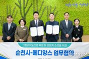 광장일보 주재영 기자 | 순천시가 글로벌 토탈 라이프케어 전문기업 ‘메디앙스(주)’와 손잡고 대한민국을 대표하는 그린바이오 산업 생태계 조성에 본격적으로 나선다. 순천시는 10일 순천시청에서 노관규 순천시장과 메디앙스 박수찬 대표이사 등 관계자들이 참석한 가운데 ‘그린바이오 산업 육성 및 생태계 조성을 위한 업무협약’을 체결했다고 밝혔다. 이번 협약은 순천시의 생태․정원 자원과 메디앙스의 고도화된 생산‧연구 역량을 결합해, 지역과 기업이 동반 성장하는 지속가능한 산업 모델 구축을 위해 마련됐다. 보령그룹에서 분리된 메디앙스는 비앤비(B·B), 닥터아토, 유피스 등 천연, 비자극 대표 브랜드를 보유한 기업으로 2025년 무역의 날 ‘수출의 탑’을 수상하는 등 독자적인 글로벌 브랜드로 성장하고 있다. 특히 자연유래성분 제품으로 중국 광군제 유아 세제부문 11년 연속 판매 1위를 기록하는 등 글로벌 시장에서의 수요 폭발로 매출 확대가 이어지고 있다. 이에 급증하는 수출 물량에 대응하고 안정적인 생산 기반 확보를 위해 독보적인 친환경 생태가치와 인프라를 지닌 순천 그린바이오산업 육성지구에 신규