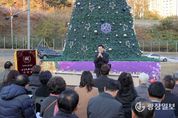 광장일보 주재영 기자 | 용인특례시는 22일 오후 기흥구 영덕동 산 1-1번지에서 ‘크리스마스트리 점등식’ 행사가 열렸다고 23일 밝혔다. 기흥구기독교연합회가 주관한 이 행사에는 이상일 시장을 비롯해 용인지역 교회 관계자 약 40여명이 참석했다. 이날 점등한 크리스마스트리는 내년 1월까지 희망과 사랑의 빛을 밝혀준다. 이 행사에서 기흥구기독교연합회는 어려운 이웃을 위해 사용해달라며 기흥구에 라면 200박스를 기탁했다. 이상일 시장은 축사를 통해 “오늘 우리가 밝히는 성탄트리가 이곳을 지나는 분들에게 세상의 빛으로 오신 아기 예수님 탄생의 의미를 잘 전달하기를 소망한다”며 “시민들이 성탄절을 맞아 좀 더 넉넉한 마음으로 서로를 더 많이 배려하고 어두운 곳에 사랑을 많이 전달하면 좋겠다”고 말했다.