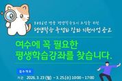 광장일보 주재영 기자 | 여수시는 시민 삶에 필요한 맞춤형 평생교육 프로그램을 발굴하기 위해 ‘2026년 평생학습 특성화 강좌 지원사업’을 공모한다고 밝혔다. 이번 사업은 ‘2026년 명품 평생학습도시’ 조성을 목표로 지역 특성과 시대적 교육 수요를 반영한 평생교육 프로그램을 발굴·지원하기 위해 추진된다. 공모 접수는 3월 23일부터 25일까지 3일간 진행되며 여수시 소재 평생교육시설, 법인, 단체를 대상으로 한다. 심사를 통해 총 7개 강좌를 선정하고, 선정된 강좌에는 강사비 최대 230만 원 이내에서 지원할 예정이다. 공모 분야는 ▲지역특화 교육 ▲ESG 시민교육 ▲디지털 활용 교육 ▲직업능력개발 ▲섬박람회 관련 교육 등이다. 여수시는 이번 사업을 통해 지역 특성을 반영한 평생교육 콘텐츠를 확대하고 시민들의 학습 참여 기회를 넓혀 지역사회 역량 강화와 평생학습 문화 확산에 기여할 것으로 기대하고 있다. 공모와 관련된 자세한 사항과 신청 서식은 여수시청 누리집 고시·공고란에서 확인할 수 있으며 문의는 여수시 평생학습관으로 하면 된다. 시 관계자는 “지역 특성과
