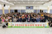 광장일보 주재영 기자 | 칠곡군 교육문화회관은 9일 2026년도 장수대학 개강식을 진행했다. 이번 개강식에서는 김재욱 군수, 이상승 군의회 의장 등 많은 내빈이 참석하여 어르신들의 배움의 열정과 끊임없는 노력에 대해 격려를 전했다. 칠곡군 장수대학은 칠곡군을 대표하는 어르신 교육 프로그램으로 65세 이상 어르신들의 행복하고 품격있는 노후 생활을 위한 강좌들로 구성·운영되고 있다. 2026년 장수대학에서는 3개 분야 16개 강좌에 475명을 모집했다. 특히, 올해에는 디지털 역량을 키우기 위한 스마트폰·AI 활용 등 정보화 강좌가 조기 마감되는 등 디지털 환경에 적응하기 위한 어르신들의 노력을 엿볼 수 있었다. 칠곡군 관계자는 “칠곡군 장수대학이 어르신들의 배움터이자 후반기 인생에 활력소가 될 수 있도록 실용적이고 유익한 프로그램을 발굴·운영토록 노력할 것” 이라며 “특히 어르신들의 눈높이에 맞춘 AI 등 정보화 교육을 더욱 활성할 것”이라고 밝혔다. 한편, 상반기 장수대학은 3월 9일부터 6월 26일까지 총 16주간 운영된다.