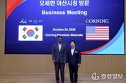 광장일보 주재영 기자 | 아산시는 24일 글로벌 첨단 유리소재 선도기업인 코닝정밀소재㈜를 방문해 임직원들과 간담회를 갖고 지역경제 활성화와 상생협력 방안을 논의했다고 밝혔다. 이번 방문은 코닝정밀소재의 생산 현장을 직접 둘러보고, 최근 디스플레이 산업의 기술 변화와 기업 애로사항을 청취하며 지역 산업 생태계와 연계한 협력 방안 및 지역경제 회복 방향을 모색하기 위해 마련됐다. 간담회에는 오세현 시장을 비롯해 이재성 기획경제국장 등 시 관계자와 반 홀(Vaughn M. Hall Jr.) 코닝정밀소재 대표이사와 임원진 등 20여 명이 참석했다. 양측은 △코닝의 첨단 건축용 유리제품 공공건축물 적용 △아산시 관내 기업 이용 및 청년 현장견학 프로그램 운영 △아산페이 더블혜택 이벤트 홍보 △지역 농산물 이용 등 다양한 상생 협력 과제에 대해 의견을 교환했다. 이 자리에서 오 시장은 “디스플레이 산업은 초고해상도, 대형화, 폴더블 등 기술 패러다임이 빠르게 전환되고 있으며, 그 중심에 코닝의 초박막‧고기능성 유리 기술이 있다”고 평가했다. 특히 “코닝정밀소재는 아산의 미래산업을 함께 설계하는 든