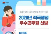 광장일보 주재영 기자 | 김천시는 행정서비스 향상과 공익 증진, 사회문제 해결을 위해 2026년도 적극행정 우수공무원을 선발한다고 밝혔다. 시는 지난해에 이어 올해에도 적극적으로 일하는 공직문화를 지속적으로 조성하기 위해 연중 개인 16명, 팀 6팀을 선발할 계획이며, 지난해보다 포상금을 확대 마련해 적극행정에 대한 강한 의지를 드러냈다. 특히, 올해에는 적극행정 우수공무원 추천 기간을 연중 상시로 열어두어 특정 시기에 정해진 업무를 처리하는 것에서 벗어나 담당자가 주도적으로 업무를 추진할 수 있도록 장려한다. 동시에 시민들도 일상에서 변화를 체감할 때마다 적극행정 우수사례를 김천시 기획예산실로 추천할 수 있다. 추천된 사례는 사전심사 및 시민 투표를 거친 후, 인사위원회 심의·의결을 통해 최종 우수사례가 선정된다. 우수공무원으로 선발 시 특별승급, 성과상여금 최고등급의 인사상 우대 조치와 포상금, 포상휴가 등 인센티브가 지급될 예정이다. 배낙호 김천시장은 “김천시는 행정 효율을 높이기 위해 올해 1월 1일 자로 조직개편을 단행했다. 이와 함께 이번 적극행정 우수공무원 선발 등을 통해 모든 공직자가