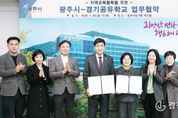 광장일보 주재영 기자 | 광주시는 30일 시청 비전홀에서 광주하남교육지원청과 지역교육 협력 강화를 위한 ‘광주시–경기공유학교 학교 맞춤형 업무협약’을 체결했다. 이날 협약식에는 방세환 시장과 오성애 교육장을 비롯해 양 기관 관계자들이 참석했다. 이번 협약은 기존 ‘광주미래교육협력지구’ 사업이 올해 2월 종료됨에 따라 사업 명칭을 ‘경기공유학교 학교 맞춤형’으로 변경하고 광주시와 경기도교육청이 앞으로 2년간 지역 내 학교와 학생을 대상으로 맞춤형 교육지원사업과 경기공유학교 정책을 연계·추진하기 위해 마련됐다. ‘경기공유학교 학교 맞춤형’ 사업은 공공이 책임지고 지역이 함께 참여해 학교 교육을 지역으로 확장하는 공공·협력·개방·확장형 미래교육 민관 협치 참여를 의미한다. 이를 통해 지역 여건과 학교 수요를 반영한 교육 협력 체계를 구축한다는 계획이다. 현재 시는 광주하남교육지원청과 협력해 초·중·고등학생을 대상으로 학교-지역 이음 오케스트라, 온마을 체험학교(탐방·체험터·마을강사), 진로 교육 지원, 미래학교 조성 지원 등 다양한 미래교육협력지구 사업을 추진하고 있다. 양 기관은 협약 체결 이후 교육협