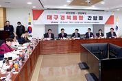 광장일보 주재영 기자 | 경상북도와 국민의힘(경북도당위원장 구자근)은 26일 국회의원회관에서 대구경북통합 간담회를 열고 지역 국회의원의 다양한 의견을 수렴하고 국회와의 협력방안을 논의했다. 이날 간담회에는 이철우 경북도지사와 국민의힘 구자근 경북도당 위원장, 경북지역 국회의원과 경상북도 주요 간부들이 참석했다. 이철우 경북도지사는 인사말에서“경북은 2019년부터 전국에서 가장 먼저, 가장 적극적으로 통합 논의를 시작해왔다. 정부가 광역 통합 시 행정·재정·제도적 지원을 책임지겠다고 한 만큼 지금이 통합의 적기이다.”면서 “경북의 특별법안은 충남·대전, 광주·전남이 상당수 참고할 정도로 이미 준비되어 있다. 국회에서 대구경북통합에 대해 많은 관심을 갖고 적극적으로 지원해 주길 당부드린다.”고 말했다. 구자근 도당위원장은“행정통합은 대구경북의 미래에 관한 중요한 사항”이라면서 “성장동력 약화, 수도권 집중 등으로 통합은 이미 시대적 흐름이다. 시도민의 삶에 큰 변화를 불러오는 만큼 타이밍과 속도가 중요하다. 꼼꼼하게 점검하고 지역의 목소리를 대변하겠다.”고 언급했다. 이어 송언석 국민의힘 원내대표 역시