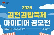 광장일보 주재영 기자 | 김천시는 국민과 함께 만들어가는 참여형 축제를 위해 ‘2026 김천김밥축제 아이디어 공모전’을 개최한다. 이번 공모전은 김천김밥축제를 더욱 참신하고 경쟁력 있는 축제로 발전시키기 위해 국민의 창의적인 아이디어를 발굴하고, 우수 콘텐츠를 실제 축제 프로그램에 반영하고자 마련됐다. 공모 기간은 3월 3일부터 4월 30일까지이며, 대한민국 국민 누구나 참여할 수 있다. 공모 주제는‘김밥’을 소재로 한 축제콘텐츠 아이디어로, ▲체험·참여 프로그램 ▲이색 테마존 및 공간연출 ▲어린이·가족·MZ세대·외국인 대상 맞춤형 콘텐츠 ▲지역 관광자원과 연계한 프로그램 ▲캐릭터 굿즈 및 브랜드 확장 등 다양한 분야에서 자유롭게 제안할 수 있다. 접수된 아이디어는 전문가 심사(80%)와 일반인 온라인 심사(20%)를 거쳐 총 10개 아이디어를 선정하며, 수상자에게는 상장과 함께 최우수상 100만 원 등 총 510만 원 규모의 시상금이 수여된다. 선정된 아이디어는 검토를 거쳐 실제 축제 현장에 반영될 예정이다. 김천시는 이번 공모전을 통해 국민이 직접 참여하고 아이디어를 제안하는 개방