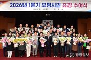 광장일보 주재영 기자 | 진주시는 13일 시청 시민홀에서 지역사회 발전에 기여하고 자발적인 봉사와 나눔을 실천한 시민 90명을 대상으로 ‘2026년 1분기 모범시민 표창 수여식’을 개최했다. 이날 수여식에서는 지역사회 발전을 위해 헌신하고 이웃사랑 실천에 앞장서 온 시민들에게 시정 발전·선행 분야의 모범시민 표창이 수여됐다. 표창을 받은 시민들은 각자의 자리에서 이웃과 지역을 위해 봉사하며 따뜻한 공동체를 만들어 온 공로를 인정받았다. 특히 ▲홀몸 어르신들의 생활환경을 살피고 조손가정 학생 지원에 앞장서 온 ‘박진옥’ 진주백합로타리클럽 회장 ▲암 투병 중인 독거노인을 가족처럼 돌보는 따뜻한 나눔을 실천해 온 ‘박형오’ 씨 ▲진주의 이야기를 담은 도서를 발간해 지역의 가치를 알리고 문화예술 발전에 기여한 ‘이문희’ 도서출판 곰단지 대표 ▲금호지 주변 환경을 내 집 앞마당처럼 가꾸며 깨끗한 지역 환경 조성에 힘써 온 ‘강길봉’ 씨 등이 표창을 받았다. 이 밖에도 지역 곳곳에서 묵묵히 봉사와 나눔을 실천하고 있는 이·통장과 봉사단체 회원 등 많은 시민의 공로가 함께 빛났다. 진주시 관계자는