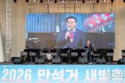 광장일보 박균현 기자 | 수원특례시의회는 4일 만석공원 일원에서 열린 '2026 만석거 새빛축제'에 참석해 시민들과 함께 축제의 시작을 알리고, 수원을 대표하는 야간 관광 콘텐츠의 가능성을 확인했다. 이번 축제는 세계문화유산인 만석거의 역사적 가치를 널리 알리고, 벚꽃 시즌과 연계한 야간관광 활성화를 위해 마련됐다. 특히 ‘2026 수원 방문의 해’를 맞아 추진되는 대표 프로그램 중 하나로, 관광객 유입과 지역 상권 활성화에도 긍정적인 역할이 기대된다. 이날 개막식에서는 드론 500여 대가 참여한 라이트쇼와 화려한 불꽃놀이가 만석거 밤하늘을 수놓으며 장관을 연출했고, 음악분수와 버스킹 공연 등 다양한 문화 콘텐츠가 어우러져 현장을 찾은 시민들에게 풍성한 즐길 거리를 제공했다. 수원특례시의회는 행사에 참석해 시민들과 소통하며 축제 운영 상황을 살펴보고, 지역 관광자원과 연계한 문화콘텐츠 확대 방안에 대해 공감대를 나눴다. 행사에는 이재식 의장을 비롯한 시의원들이 함께 참석해 시민들과 축제의 시작을 함께했다. 이재식 의장은 “만석거는 시민의 삶을 풍요롭게 하는 문화공간”이라며“이번 축제가 수원을 대표하