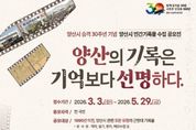 광장일보 주재영 기자 | 양산시는 시 승격 30주년을 기념하여 양산시 민간기록물 수집 공모전 ‘양산의 기록은 기억보다 선명하다’를 개최한다. 참여 대상자는 지역 제한 없이 1996년 이전 양산의 역사·문화, 풍경, 일상생활, 마을 기록, 행정 기록 등 옛 모습을 간직한 양산 관련 기록물을 소장한 사람이라면 누구나 참여할 수 있다. 공모 기간은 2026년 3월 3일부터 5월 29일까지 약 3개월간 진행되며, 참여 방법은 양산시 홈페이지 고시 공고 게시판에서 신청서를 내려받아 작성 후, 직접 양산시청 종합민원과로 방문하거나 우편으로 접수하면 된다. 공모작은 심사를 거쳐 대상 1명(200만원), 최우수 2명(100만원), 우수 3명(50만원), 장려 5명(10만원) 총600만원의 상금을 지급할 계획이다. 수상작은 시 승격 30주년 기념 기획전시 및 전자도록, 상설아카이브 구축, 권역별 순회 전시 등으로 활용될 예정이다. 양산시 관계자는 “기록 없인 역사도 없다는 말이 있다. 이번 민간기록물 수집 공모전을 통해 우리 양산시의 정체성과 자긍심을 높이고, 보존가치가 있는 민간기록물의 소실을 막아 미래 기록유산으로 활용될