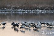 광장일보 주재영 기자 | 고창군이 해리천 일원에서 환경부 멸종위기종 1급이자 천연기념물인 황새 무리가 역대 최대 규모인 80여 마리나 월동 중인 것으로 확인됐다고 9일 밝혔다. 앞서 고창군에선 지난 2021년 60여 마리, 2023년 67여 마리가 발견됐었다. 최근 몇 년간 지속적인 관찰을 통해 고창 해리천이 황새들의 핵심 월동지임을 다시금 입증했다. 황새는 예로부터 길조(吉兆)로 여겨져 왔으며, 고창 해리천이 이처럼 대규모 황새 무리의 '겨울집'이 된 데에는 특별한 이유가 있다. 해리천은 해수가 유통되는 자연 하천으로, 맹추위 속에서도 수면이 얼지 않는다는 큰 장점을 지닌다. 이는 새만금, 서산시, 태안군 등 국내 주요 황새 월동지들이 최근 한파로 결빙되면서 황새들이 얼지 않은 해리천으로 집중적으로 모여든 것으로 분석된다. 또한, 해리천 주변에 넓게 분포하는 갯벌은 미꾸리, 갯지렁이 등 황새가 좋아하는 풍부한 먹이원을 끊임없이 제공하며 안정적인 월동을 돕고 있다. 이에더해 고창군은 황새의 안정적인 월동을 위해 먹이주기 및 환경정비 등 서식지 관리에 각별한 노력