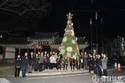 광장일보 주재영 기자 | 홍성군은 지난 9일 오후 6시 10분 홍성군청기독교신우회 주관으로 홍성군청 홍주아문앞에서 2025년 성탄 트리 점등식을 개최했다. 홍성군청선교회 주관으로 점등식과 함께 진행된 예배는 홍성군기관단체장 10여 명을 비롯해 홍성군기독교연합회와 홍성군기독교직장선교회, 지역주민 등 40여 명이 함께해 성탄의 뜻을 기리는 예배로 진행됐다. 홍성군청선교회 송재철 회장의 사회로 진행된 성탄트리 점등식 예배는 홍성군기독교연합회 이진곡 목사의 기도와 홍성군직장선교회 한규헌 장로의 성경봉독, 오종설 목사의 말씀선포, 홍성군수와 홍성군의회 의장의 축사, 김봉래 홍성군기독교연합회장의 축도로 마무리됐다. 한편, 홍성군은 주민의 안녕과 행복을 기원하고 군청을 오가는 이들이 크리스마스와 새해의 즐거움을 만끽할 수 있도록 대형트리를 설치했다. 이날 점등된 트리 앞에는 포토존도 마련되어 자유롭게 사진도 남길 수 있도록 했다.