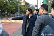 광장일보 나학천 기자 | 수원시 영통구는 지난 9일 ‘새빛만남, 수원 마음을 듣다’에서 주민들이 건의한 통학로 개선 요구사항을 확인하기 위해 잠원초등학교 인근(동수원자이1차 후문 일원)과 망포1동 행정복지센터 앞 도로의 차량 통행 불편 사항을 관계부서와 함께 현장 점검했다고 밝혔다. 먼저 잠원초 통학로 구간에서는 주민들이 제기한 불법주정차 상습 발생, 인도·차도 경계 불명확, 보행 안전 저해 요소를 해소하기 위해 ▲경계석 높이 조정 ▲2~3m 구간 휀스 제거 ▲바닥 노란색 도색을 통한 보행 동선 시인성 강화 ▲추가 횡단보도 설치 등이 검토됐다. 또한 망포1동 행정복지센터 앞 도로에서는 신영통 방향에서 행정복지센터로 진입 하는 차량 통행이 원활하지 않다는 민원사항을 파악하여 ▲기존 횡단보도 위치 조정 ▲좌회전 신호 신설을 위한 경찰서 심의 ▲행정복지센터 화단 일부 제거 ▲중앙선 절선(일부 개방) 등이 현장에서 논의됐다. 장수석 영통구청장은 “주민들께서 주신 의견을 토대로 필요한 조치가 이루어질 수 있도록 관계부서와 함께 최선을 다하겠다”며 “앞으로도 주민의 일상과 가까운 현장을 중심으로 공감하는 행정을 이어가겠다