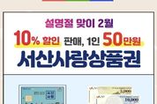 광장일보 이현나 기자 | 충남 서산시는 2026년 2월 설 명절을 맞아 지역 경제 활성화를 위해 서산사랑상품권을 150억 원 규모로 확대 발행한다고 밝혔다. 시는 2월 한시적으로 서산사랑상품권 1인당 구매 한도액을 기존 40만 원에서 50만 원으로 상향하고, 할인율은 기존과 동일한 10%를 적용한다. 모바일(카드) 상품권은 오는 2월 1일 오전 6시부터 ‘지역사랑상품권 chak’ 앱을 통해 구매할 수 있다. 지류 상품권은 2월 2일 농축협, 신협, 수협, 새마을금고, 우체국, 하나은행 등 판매대행점 58개소 개점 시간부터 구매할 수 있다. 구입한 상품권은 관내 가맹점 7,575개소에서 사용할 수 있으며, 자세한 사항은 서산시 누리집에서 확인할 수 있다. 이완섭 서산시장은 “이번 서산사랑상품권의 확대 발행이 설 명절을 맞은 시민의 가계 부담을 덜고, 지역 내 소비 촉진을 통해 소상공인 매출 증대와 골목상권 활성화로 이어지길 바란다”라고 말했다.
