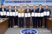 광장일보 박균현 기자 | 수원특례시가 수원햇빛발전소 활성화를 위한 협력체계를 구축하고, ‘시민체감 친환경에너지 대전환’에 나선다. 수원시와 수원도시공사, 수원시민햇빛발전 사회적협동조합, 수원에너지 협동조합, 기후시민에너지협동조합, 수원상공회의소, 수원산업단지관리공단, 아이비케이(IBK) 기업은행 동수원지점은 20일 시청 상황실에서 업무협약을 체결하고, 수원햇빛발전소 건설·활성화를 위해 협력하기로 했다. 수원햇빛발전소 사업은 수원시의 공영주차장, 공공 유휴 부지를 활용해 시민·사회·단체·기업·공공기관이 공동으로 참여하는 태양광발전소를 조성·운영하고, 수익을 시민과 공유하는 ‘시민 체감형 재생에너지 사업’이다. 전국 최초로 ‘시민우선배당방식’을 도입해 태양광 발전에 따른 수익금을 시민 투자자에게 우선 배당한다. 올해 10월까지 수원햇빛발전㈜를 설립하고, 11월부터 내년 6월까지 수원햇빛발전소를 건설할 계획이다. 2027년 6월부터 2차 사업대상지를 발굴하고, 햇빛발전소를 확대한다. 공영주차장, 공공유휴부지 등 사업대상지를 발굴해 발전 용량 20MW 이상의 태양광발전소를 설치·운영할 계획이다