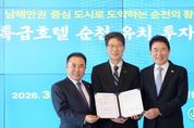 광장일보 주재영 기자 | 전라남도는 13일 순천 정원워케이션센터에서 ㈜제너시스비비큐와 호텔·컨벤션 등을 포함한 복합 관광단지 조성을 위한 투자협약을 했다. 협약식에는 황기연 전남도지사 권한대행과 윤홍근 제너시스비비큐 회장, 노관규 순천시장 등이 참석했다. 전남도는 이번 투자가 순천의 생태·정원 자원과 관광 인프라를 연계해 전남 동부권이 남해안 관광벨트의 중심축이자 글로벌 관광·레저 중심지로 자리매김하는 경쟁력을 강화하는 계기가 될 것으로 기대하고 있다. 순천은 대한민국 대표 생태수도라는 명성에 걸맞은 대규모 숙박시설을 갖추게 되면서 단순히 스쳐가는 관광지를 넘어 ‘체류형 관광’ 기반을 확대하는데 도움이 될 전망이다. 또한 2천여 개의 신규 일자리 창출과 관광객 유입 확대를 통해 지역경제 활성화에도 기여할 것으로 예상된다. 제너시스비비큐는 2031년까지 순천시 연향·오천·해룡 일원에 복합 관광단지를 조성할 계획이다. 주요 시설로는 ▲500~1천 실 규모 랜드마크 호텔 ▲국제회의가 가능한 컨벤션센터 ▲워터파크 ▲상업시설 등이 들어설 예정이다. 특히 이번 관광 복합단